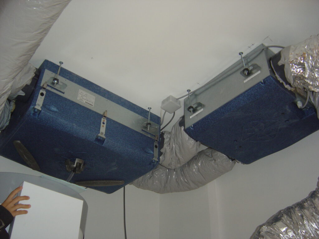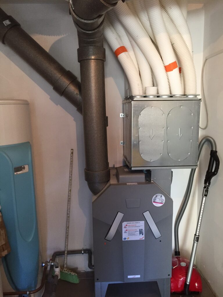 La VMC Double Flux recycle jusqu’à 90% des calories de l’air vicié extrait par une V.M.C classique. Elle assure un bien meilleur renouvellement de l’air de manière homogène dans toute la maison, et permet de distribuer efficacement dans toutes les pièces la chaleur provenant, par exemple, d’un poêle à bois. Dans les bâtiments tertiaires, le Centrales de Traitement d’Air (CTA) sont un équipement thermique majeur.
